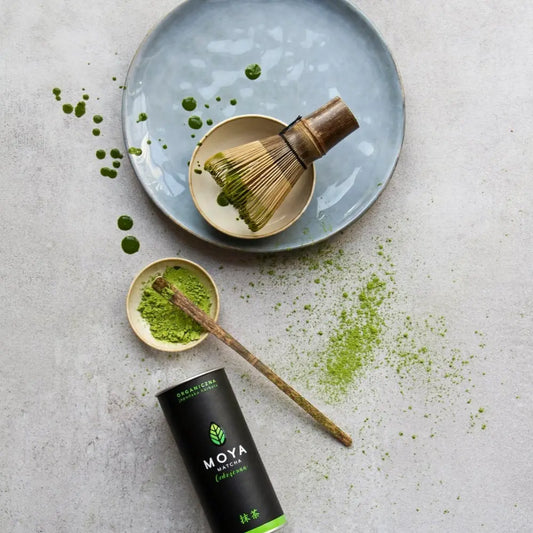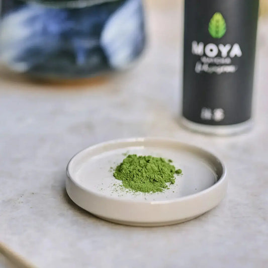 Moya Matcha to marka organicznej herbaty matcha, która jest produkowana w Japonii. Uprawia się ją na małych polach herbacianych w rejonie Uji w prefekturze Kioto. Region ten słynie z najwyższej jakości zielonej herbaty już od ponad 800 lat. Liście zostają sproszkowane na miejscu i pakowane hermetycznie, ruszając w świat z gwarancją świeżości. Dzięki temu przygotowany potem napój zachowuje wszystkie stosowne właściwości i aromaty.