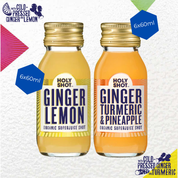 [HOLY SHOT Ginger, Lemon] Benefits of ginger (anti-inflammatory, immunity-boosting, and brain stimulator) combined with the power of lemon (source of vitamin C, helps control weight, supports heart health), in a bottled, convenient form for daily consumption.