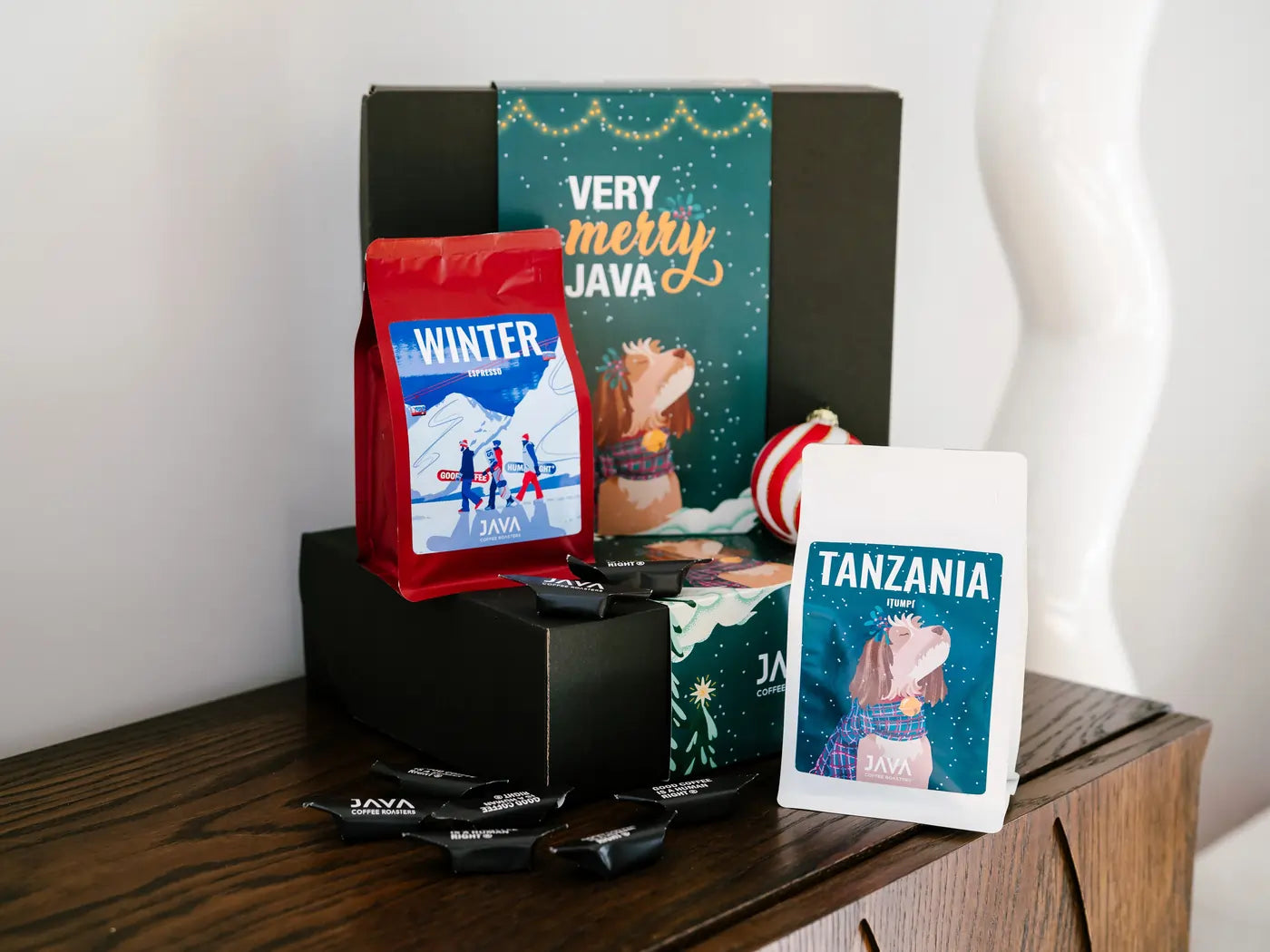 JAVA Snowy Brew Duo to zestaw prezentowy stworzony na tę porę roku, kiedy kawa pachnie intensywniej, a grudniowe rytuały zwalniają tempo. Łączymy w nim dwa profile, które naturalnie wpisują się w świąteczny czas: soczysty filtr Tanzania Itumpi oraz czyste, uporządkowane Winter Espresso z Gwatemali. Jedna kawa wnosi świeżość i lekkość, druga - ciepło i stabilny smak, który dobrze odnajduje się zarówno w porannym pośpiechu, jak i w spokojnych świątecznych popołudniach.